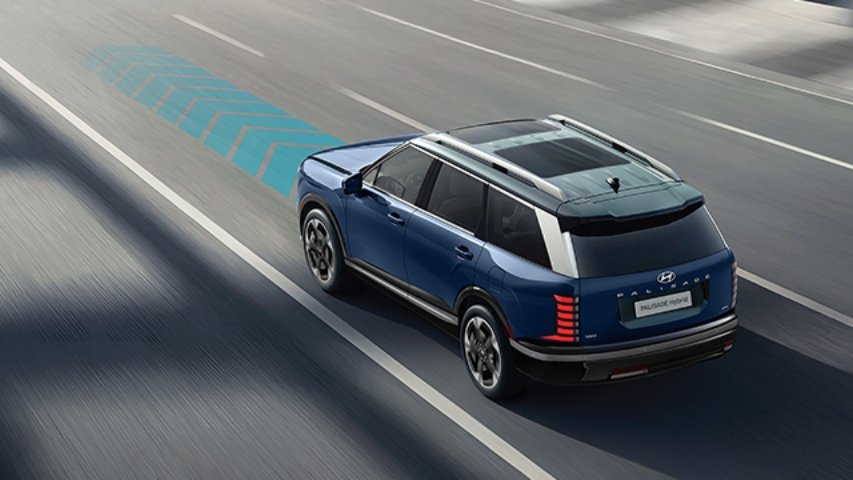 El asistente de seguimiento de carril 2.0 (LFA 2.0) está disponible en todas las versiones de The all-new PALISADE Hybrid y ayuda a mantener el vehículo centrado en su carril mediante correcciones suaves en la dirección. Esto reduce el esfuerzo de conducción en trayectos largos y aporta mayor seguridad en autopistas y vías rápidas.