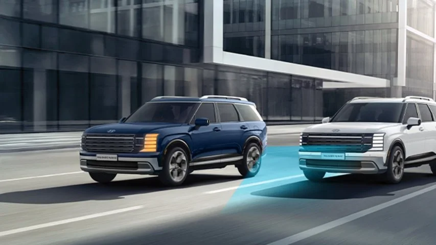 The all-new PALISADE Hybrid incluye Asistente para evitar colisiones en punto ciego (BCA) en todas sus versiones. Este sistema supervisa las zonas laterales no visibles con los espejos y puede alertar, e incluso intervenir con el frenado, para ayudar a evitar colisiones al cambiar de carril o salir de un estacionamiento.