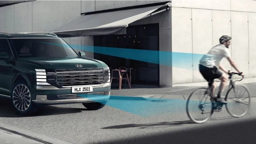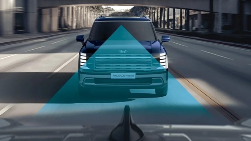 The all-new PALISADE Hybrid incluye asistente para evitar colisiones frontales (FCA 2.0) en todas sus versiones. Este sistema detecta riesgos con vehículos, personas peatonas o ciclistas y puede aplicar el freno automáticamente si no hay respuesta inmediata, ayudando a prevenir o mitigar impactos frontales.