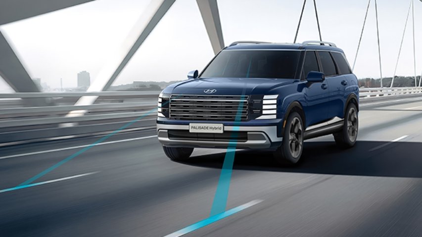The all-new PALISADE Hybrid incluye asistente de mantenimiento de carril (LKA) en todas sus versiones. Este sistema detecta las líneas del carril y puede ayudar a corregir suavemente la dirección si el vehículo comienza a desviarse, contribuyendo a una conducción más segura y estable.