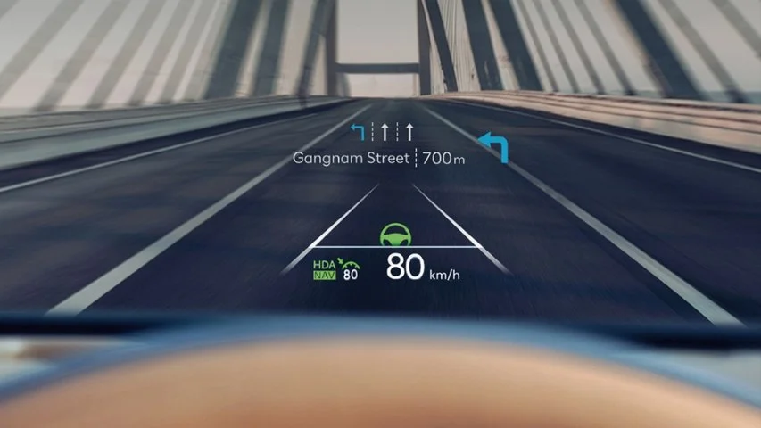 The all-new PALISADE Hybrid incorpora Head-up Display (proyector de información frontal) en las versiones superiores, proyectando datos clave como velocidad o alertas sobre el parabrisas para ayudar a mantener la atención en el camino sin desviar la mirada.