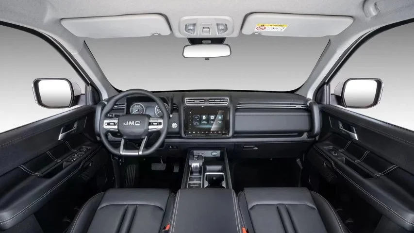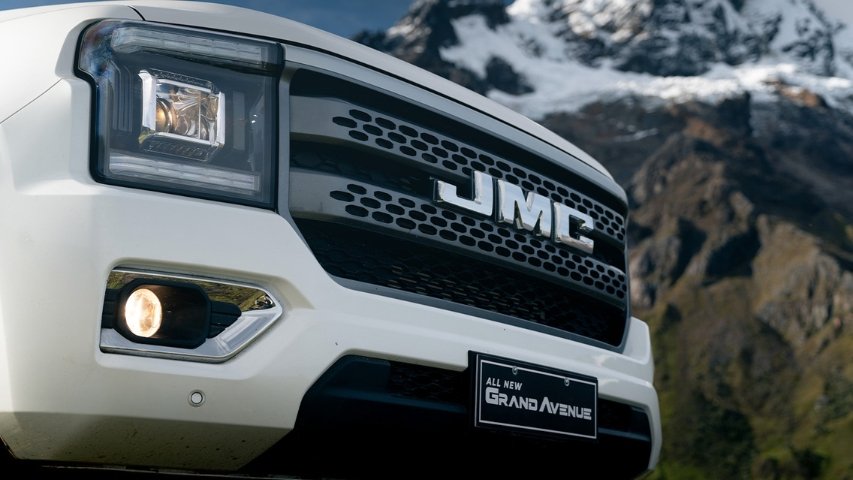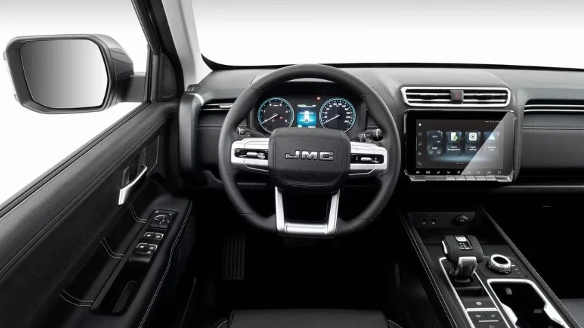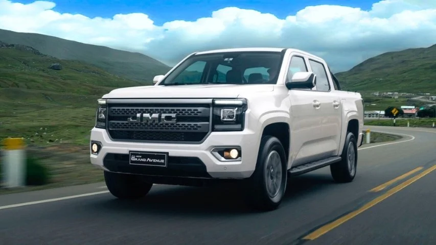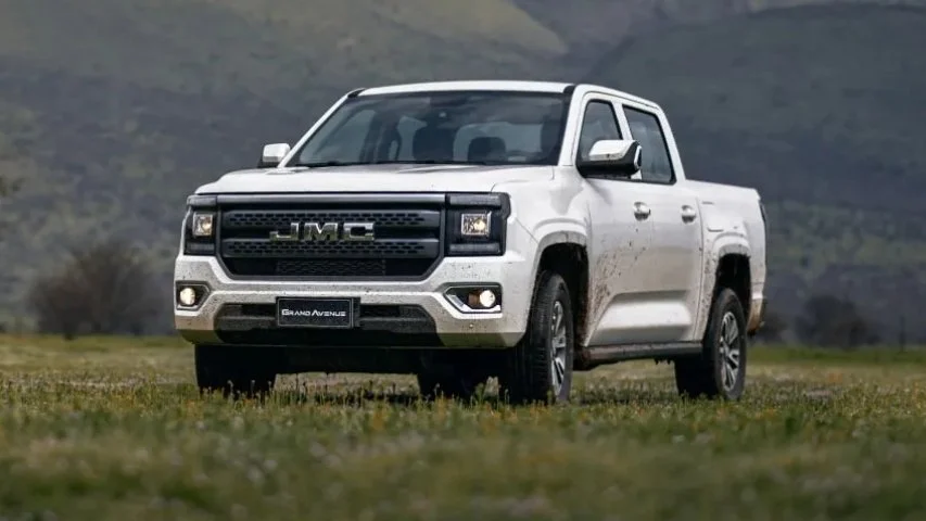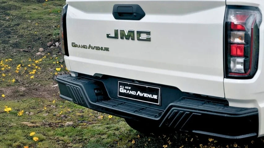 La JMC Grand Avenue presenta un diseño imponente con carrocería doble cabina de más de 5.4 metros de largo y casi 1.94 metros de ancho. Todas las versiones incorporan aros de aleación, barra antivuelco y neblineros, elementos que refuerzan su carácter de trabajo y aventura al mismo tiempo.